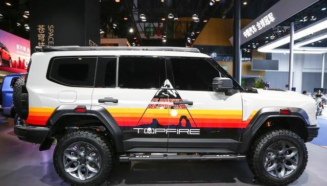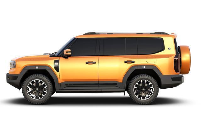 来到侧面,新车尺寸也是比较大的,车长5198毫米,车宽2050毫米,车高1950毫米,轴距2870毫米,并且这车是带空气悬架+CDC的,涉水深度达到了970毫米,所以整车体量感看起来是真的很大。